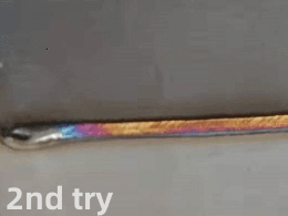 3rd try: laser welding result is much better when we adjust laser power from 260watt to 200watt.